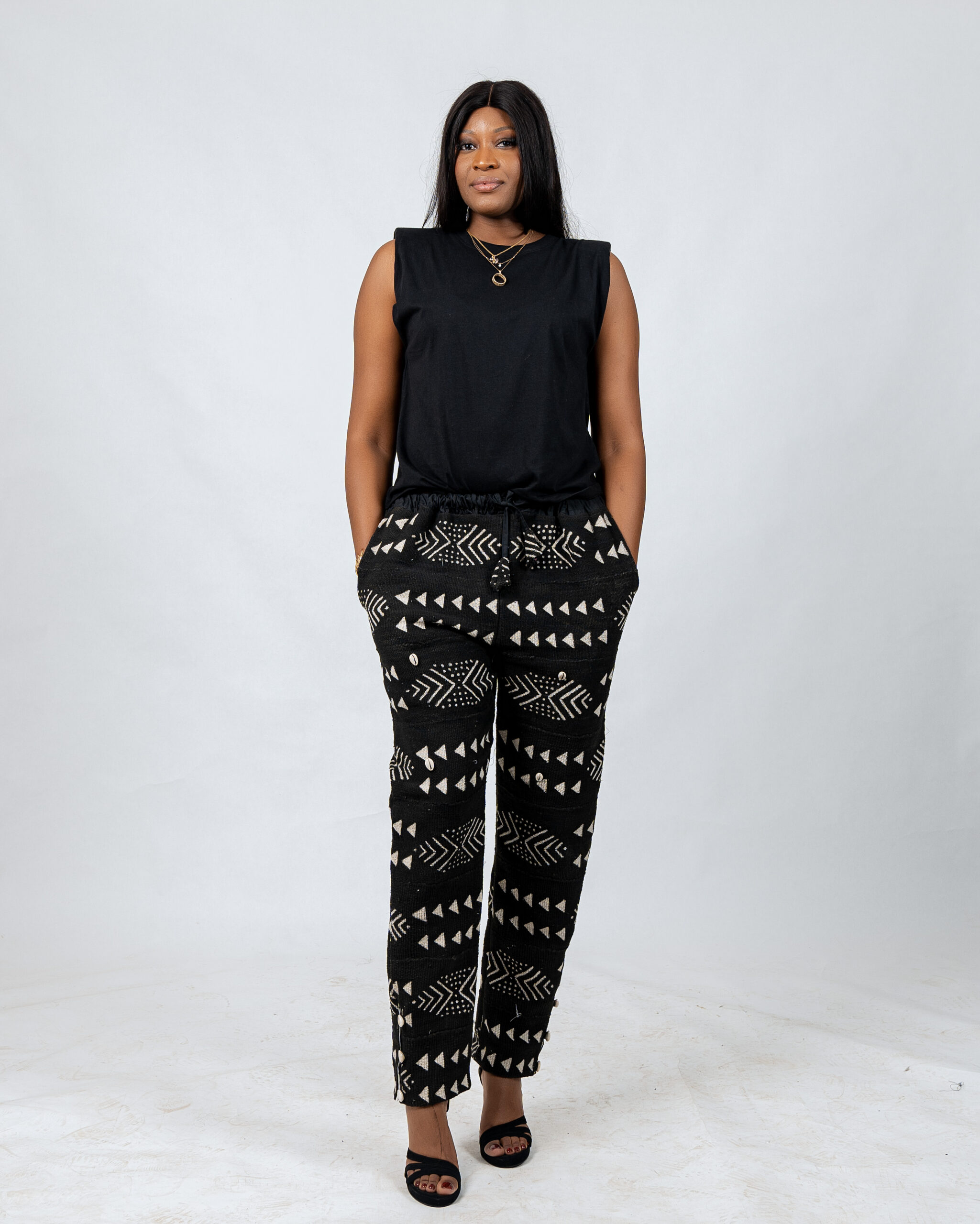 Inspirée par le bogolan, symbole de tradition et d’authenticité, BOBOKAN crée des pantalons haut de gamme aux coupes maîtrisées, aux matières nobles et aux détails subtils.